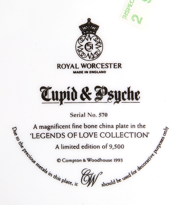 Декоративная тарелка "Амур и Психея", Фарфор, винтаж, Royal Worcester, Великобритания, 1993 год