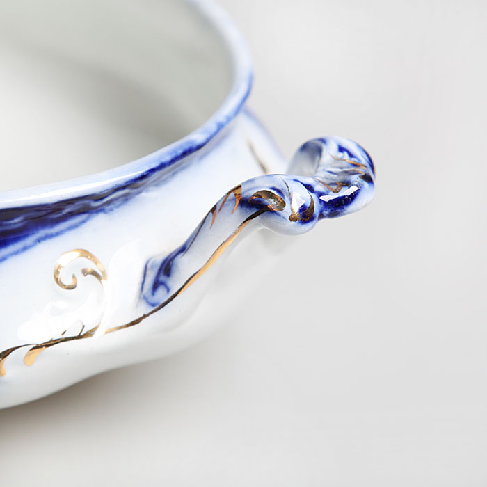Салатница украшен кобальтовым цветочным орнаментом и станет прекрасным подарком для любителей и колекционеров фарфора.
