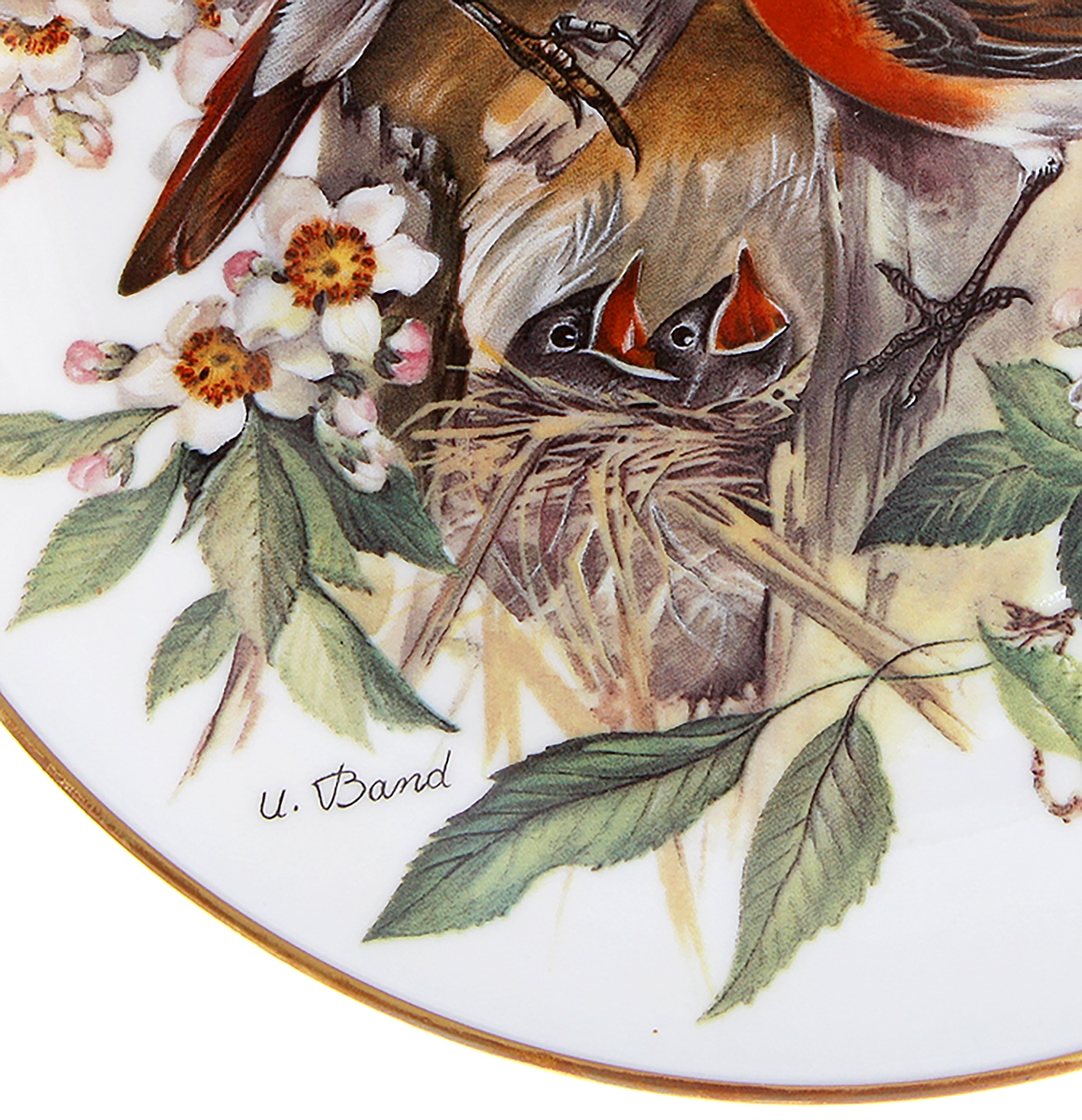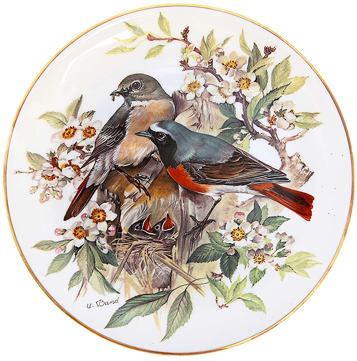 Урсула Бэнд "Горихвостка", декоративная тарелка. Фарфор, деколь, золочение 22 К золотом. Tirschenreuth WWF, Германия, 1986 год