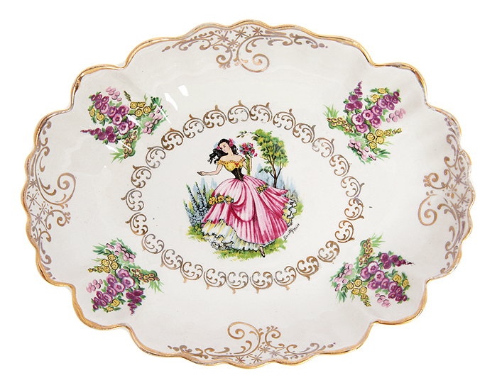 Вазочка для орешков или сухариков. Фарфор, деколь, золочение. Old Foley, Великобритания, 1960-е гг.