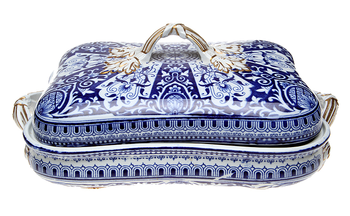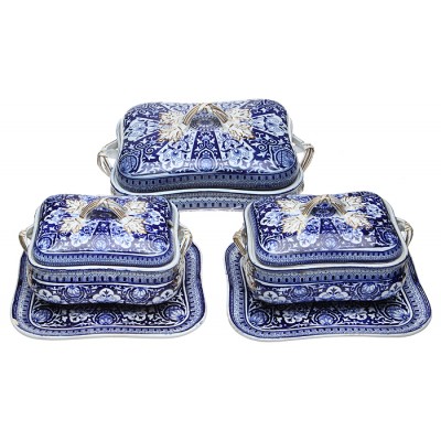 Набор из трех блюд для горячего, 5 предметов, викторианской эпохи. Фаянс, деколь, золочение. Великобритания, конец ХIХ века