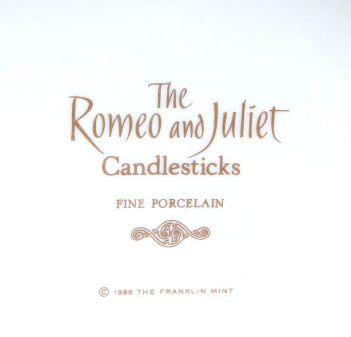 Подсвечники парные "Ромео и Джульетта". Фарфор. Высота 25,5 см. Franklin Mint, США, 1986 год