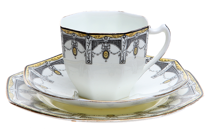 Чайное трио "Клермонт". Фарфор, деколь, золочение. Royal Doulton, Великобритания, 1920-е гг.