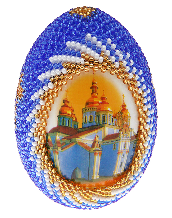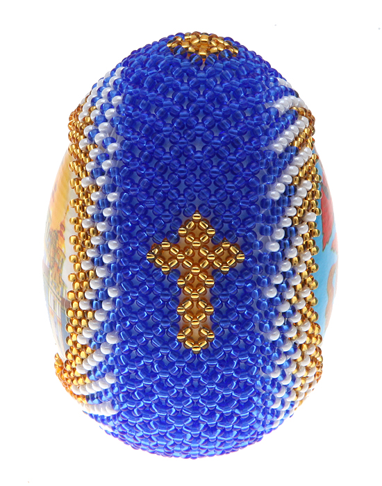 Яйцо пасхальное, авторская работа. Разноцветный бисер, дерево, деколь, лак, ручное плетение. Мастерская бисероплетения Кашуба, Россия