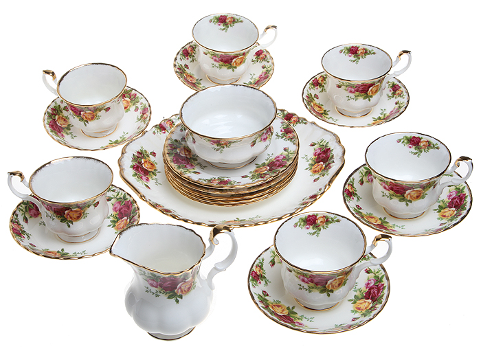 Сервиз "Розы Старой Англии" на 6 персон, 21 предмет. Фарфор, деколь, золочение. Royal Albert, Великобритания, 1960-е гг.