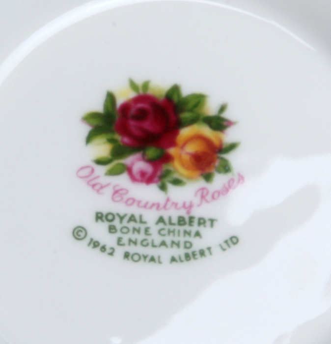 Маркировка: подглазурное клеймо зеленого цвета "Royal Albert. Bone china. England. 1962 Royal Albert LTD".