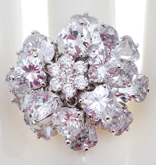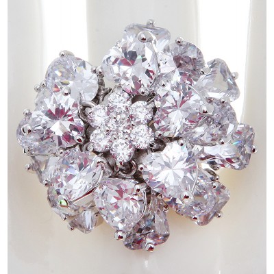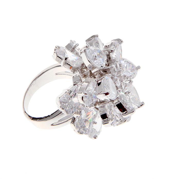 Кольцо коктейльное "Завтрак у Тиффани" с подвижными камнями от Arrina. Прозрачные сверкающие кристаллы, бижутерный сплав серебряного тона. Гонконг, 2000-е гг.