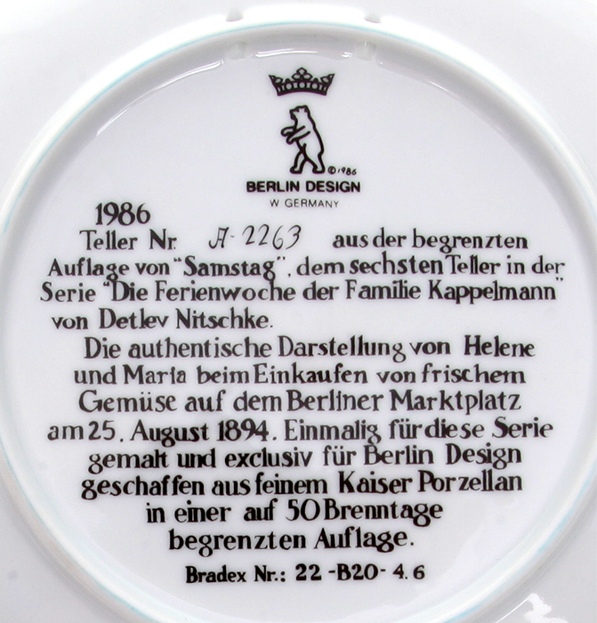 Детлев Нишке "Суббота", декоративная тарелка. Серия "Праздничная неделя семьи Капельман".