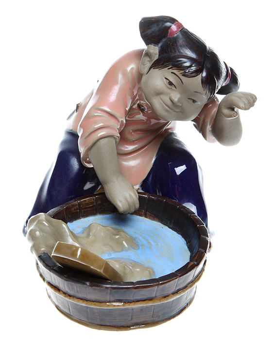 Статуэтка "Стирка". Керамика, глазуровка, роспись, ручная работа. Китай, первая половина ХХ века