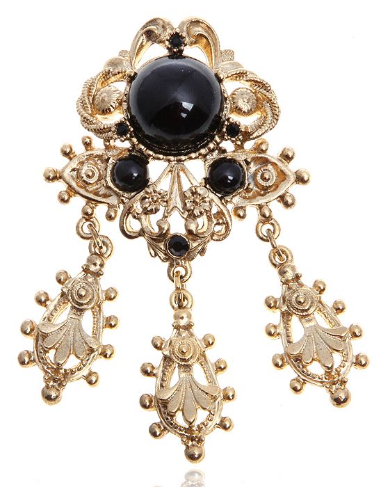 Брошь "Ночные тайны". Кристаллы черного цвета огранки кабошон, бижутерный сплав золотого тона. Специально для LeCadeau, Франция, 1990-е годы