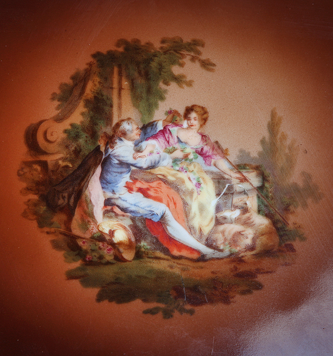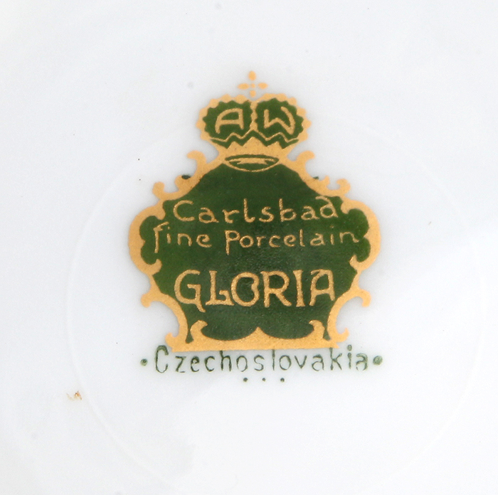 Маркировка: надглазурное клеймо золотого цета "Carlsbad fine porcelain Gloria. Made in Czechoslovakia" и "Rembrandt".