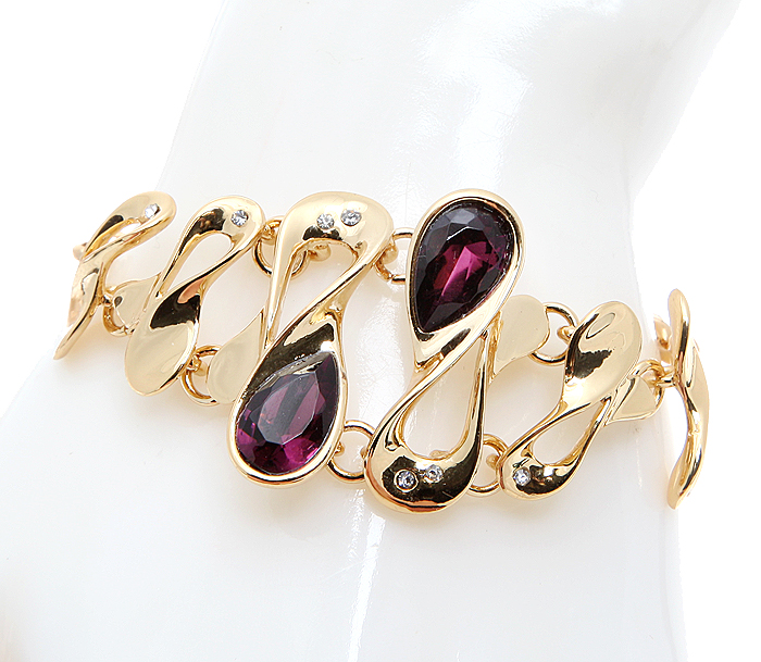 Браслет "Бриджит" от Viennois. Кристаллы аметистового цвета, прозрачные стразы, бижутерный сплав золотого тона. Гонконг, 2000-е гг.