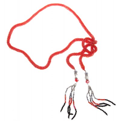 Подвеска-пояс "Ля мур". Бисер красного цвета, разноцветные бусины, прозрачные стразы, бижутерный сплав серебряного тона. Гонконг, 2000-е гг.