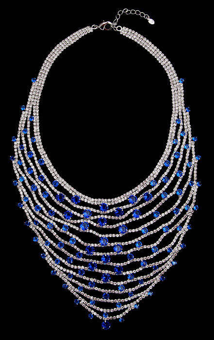 Комплект "Богиня утренней зари": колье и серьги-пусеты от Arrina. Австрийские кристаллы сапфирового цвета, прозрачные стразы, бижутерный сплав серебряного тона. Гонконг, 2000-е гг.