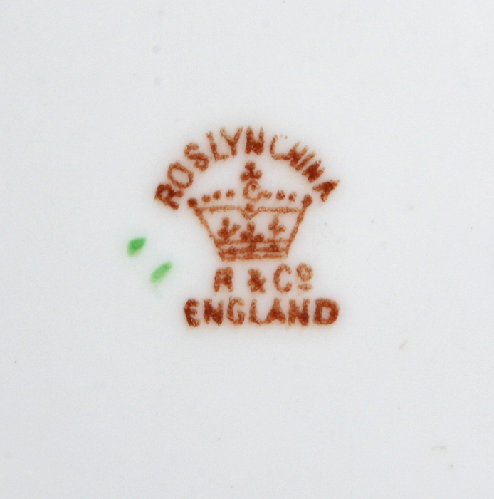 Маркировка: подглазурное клеймо коричневого цвета "Roslyn china. England".