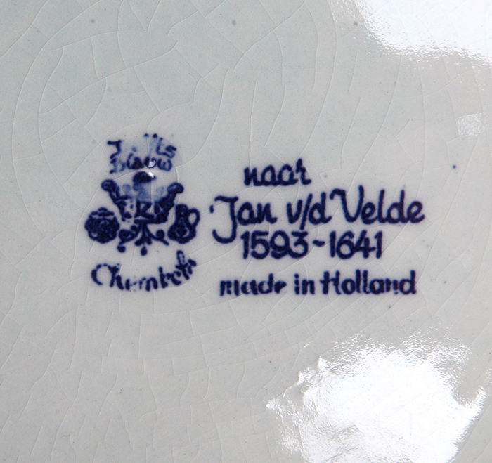 Маркировка: подглазурное клеймо синего цвета "Delfst Blauw Chemkefa Made in Holland".