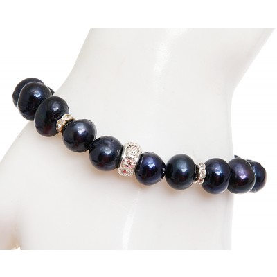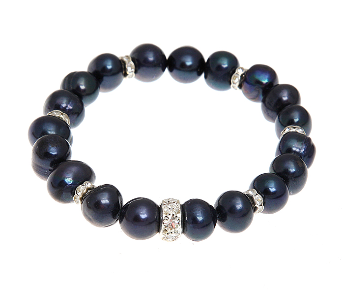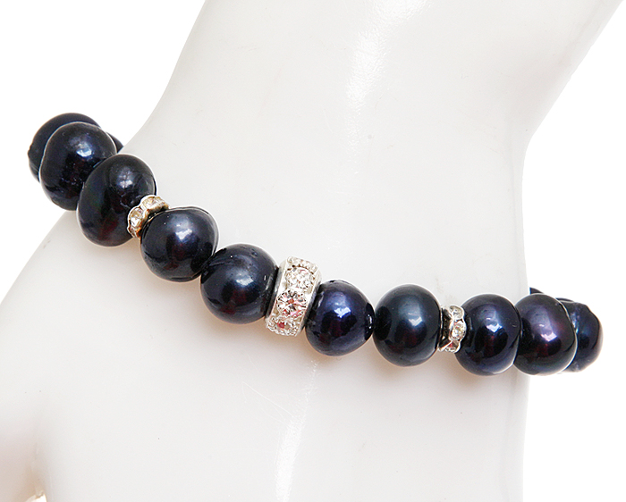 Браслет "Жемчужная ночь". Натуральный речной темно-синий жемчуг, прозрачные стразы. Гонконг, 2000-е гг.
