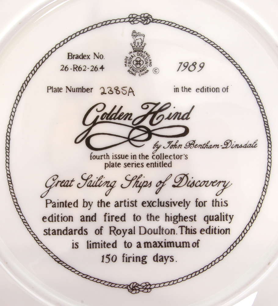 Джон Бернхам-Динсдейл "Золотая лань", декоративная тарелка из серии "Открытия великих парусных судов".
