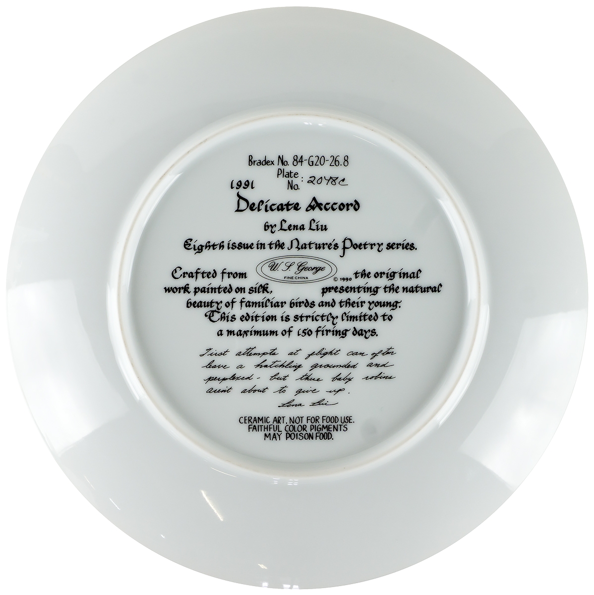 Лена Лю "Деликатный аккорд", декоративная тарелка. Фарфор. W. J. George, США, 1991 год