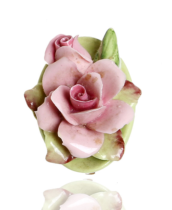 Брошь "Нежные розы". Фарфор, роспись, бижутерный сплав золотого тона. Западная Европа, вторая половина ХХ века