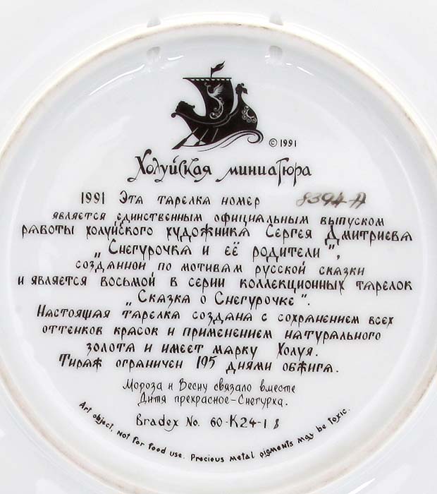 Маркировка: надглазурное клеймо черного цвета "Холуйская миниатюра" и аннотация.