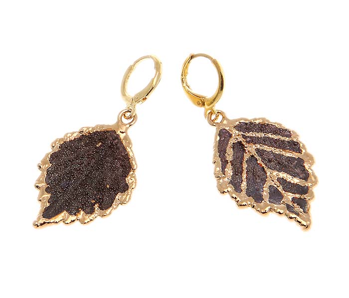 Серьги "Лист фиалки". Натуральный листок фиалки, медь, патина, золочение 21 К, ручная работа. Laroya, Россия