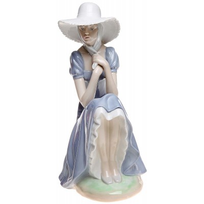 Статуэтка фарфоровая "Девушка в соломенной шляпке", винтаж, Высота 27 см, Nao для Lladro, Испания, 1980-е гг.
