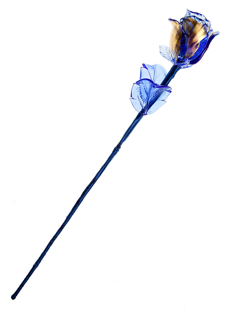 Murano. Декоративная синяя роза для украшения интерьера. Муранское стекло, золочение, ручная работа. Murano, Венеция