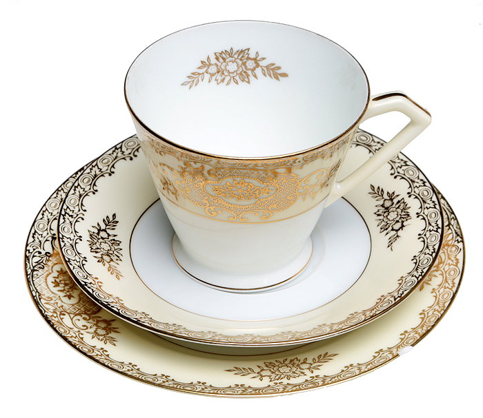 Noritake. Чайный сервиз "Золотые узоры" на 6 персон, 19 предметов. Фарфор, деколь, золочение. Noritake, Япония, середина ХХ века