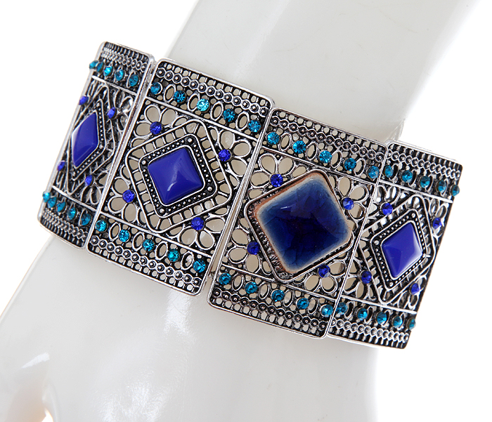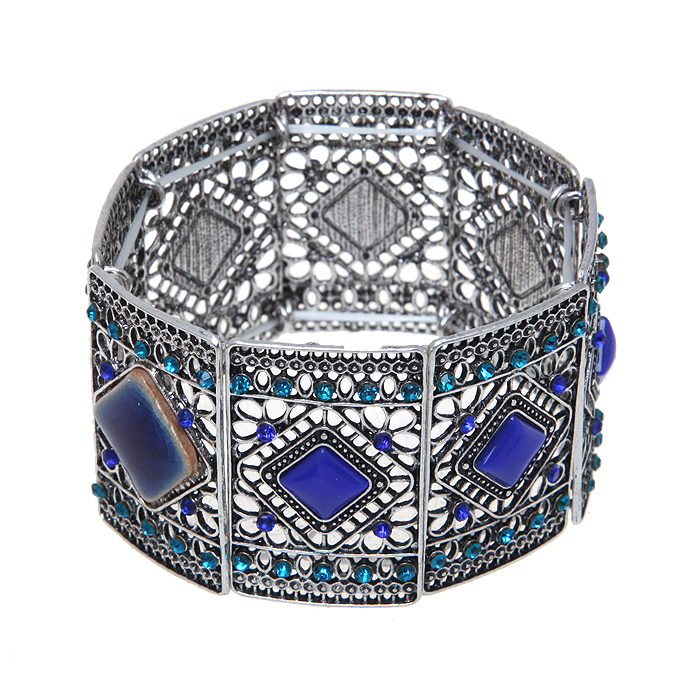 Браслет "Франческа". Ювелирный пластик, стразы синего и голубого цвета, бижутерный сплав серебряного тона. Гонконг, 2000-е гг.
