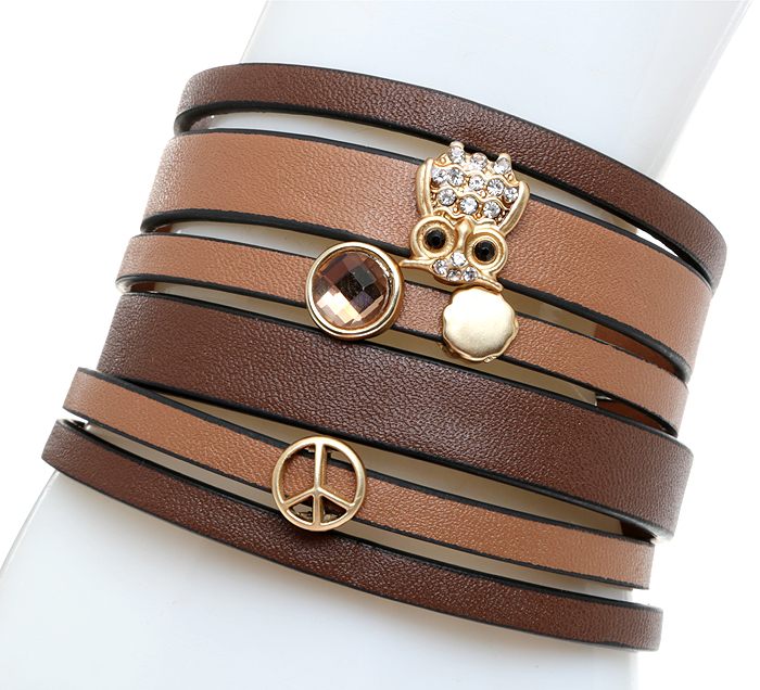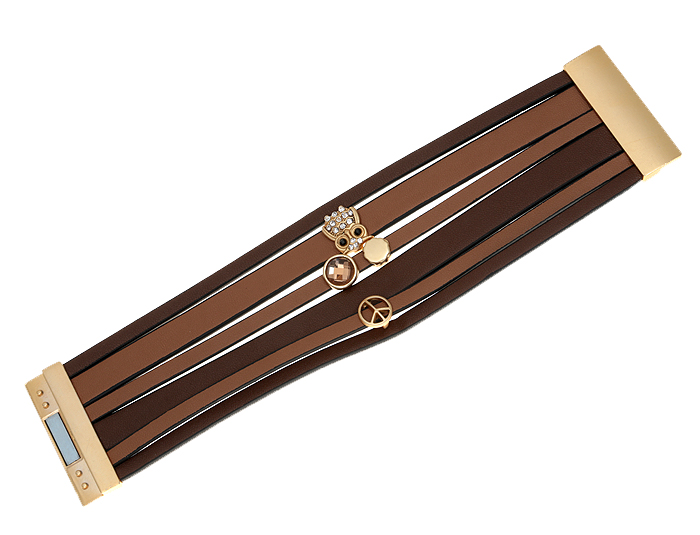 Браслет "Золотая сова". Кристалл золотистого цвета, прозрачные стразы, гипоаллергенный ювелирный сплав, натуральная кожа. Lisa Lone, Испания