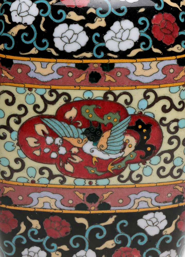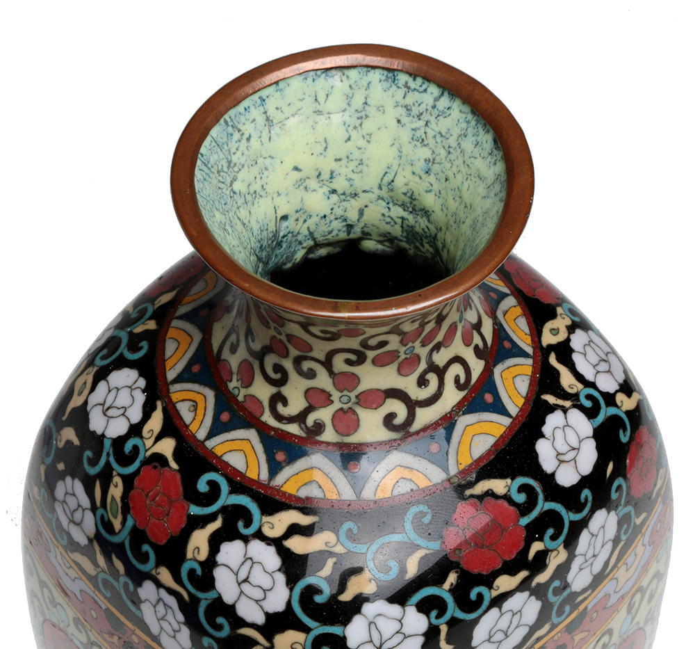 Ваза "Восточный узор" эпохи Мейдзи . Металл, эмаль клуазоне, золочение, ручная работа. Высота 24 см. Япония, конец ХIХ века.