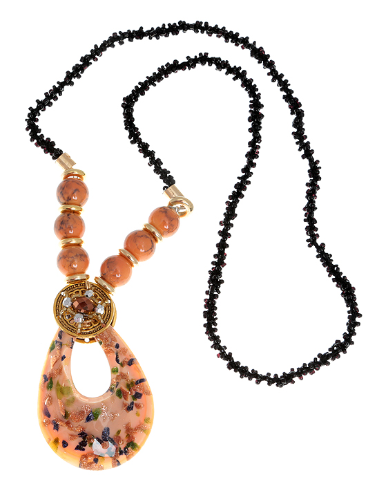 Ожерелье "Осенний бриз". Имитация муранского стекла, черный бисер, бусины лососевого цвета, бижутерный сплав золотого тона. Гонконг, 2000-е гг.