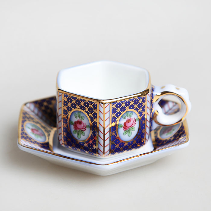 Комплект миниатюрных чашек, 6 штук. Фарфор, деколь, золочение. Past Times, Великобритания, конец ХХ века