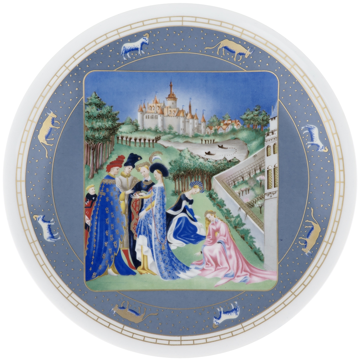 Джин Датейл "Апрель. Счастливые времена герцога Жана де Берри", коллекционная декоративная тарелка. Фарфор, деколь, подрисовка, золочение. Limoges, Франция, 1977 год