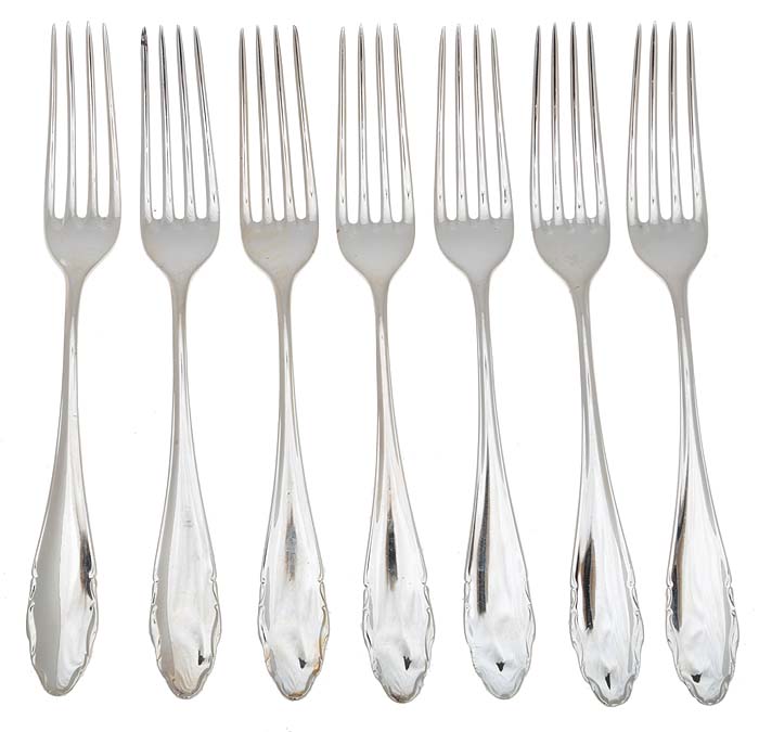 Набор столовых вилок, 7 шт. Металл, серебрение. WMF, Великобритания, первая половина ХХ века