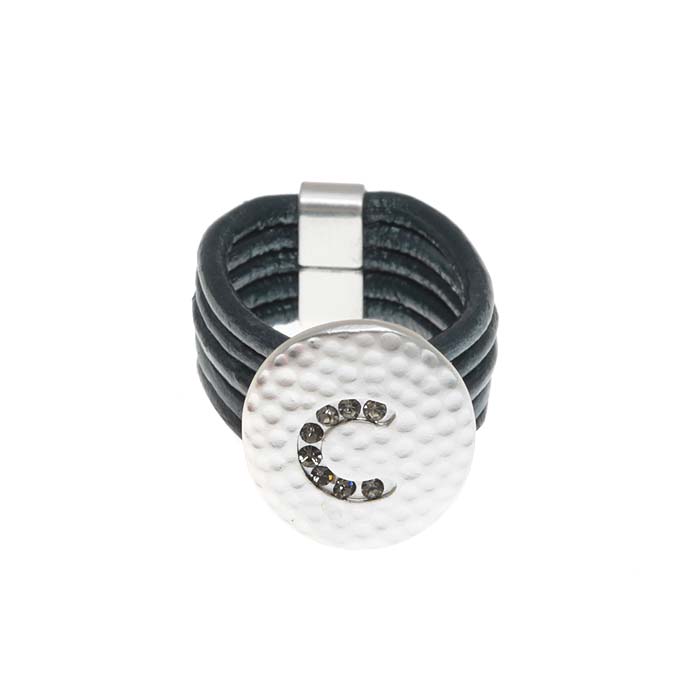 Кольцо коктейльное "Селеста". Натуральная кожа синего цвета, стразы, гипоаллергенный бижутерный сплав серебряного тона. Krikos, Испания