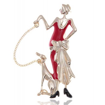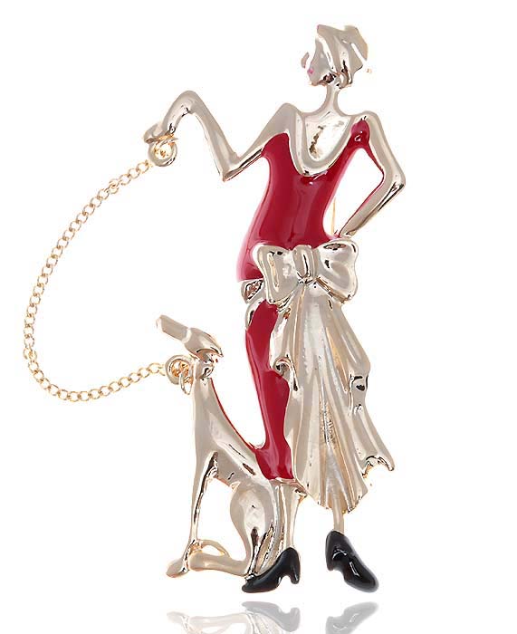 Брошь "Парижанка Арт Деко" от D.Mari. Эмаль красного и черного цвета, бижутерный сплав золотого тона. Гонконг