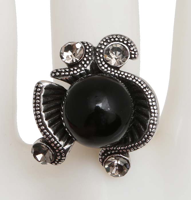 Кольцо коктейльное "Черный жемчуг". Кристаллы серебристого цвета, ювелирный акрил, гипоаллергенный бижутерный сплав серебряного тона. Arrina, Гонконг