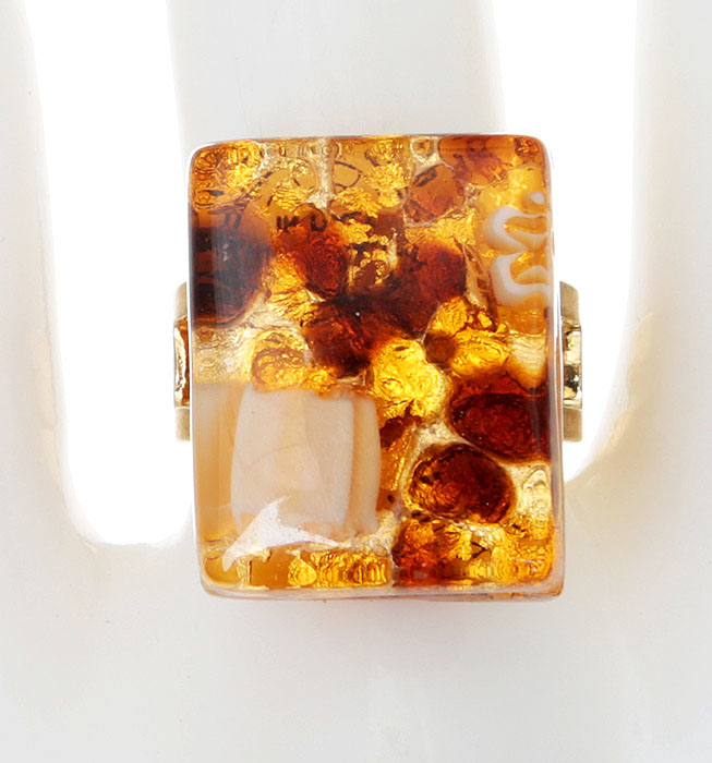 • Кольцо коктейльное "Медовый свет". Муранское стекло, бижутерный сплав золотого тона, ручная работа. Murano, Италия (Венеция). вид 2