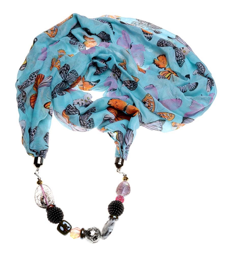 Шарф-колье, артикул SVB-0155-4. Трикотаж, металл, французский пластик, керамика, поделочные камни. Ручная работа. 70 х 150 см. Tantino, Россия