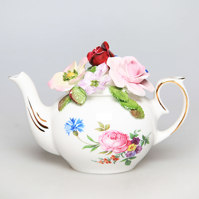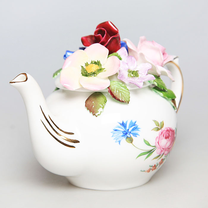Чайник заварочный коллекционный "Лето". Фарфор, роспись, золочение. Royal Stratford, Великобритания, 1996 год.