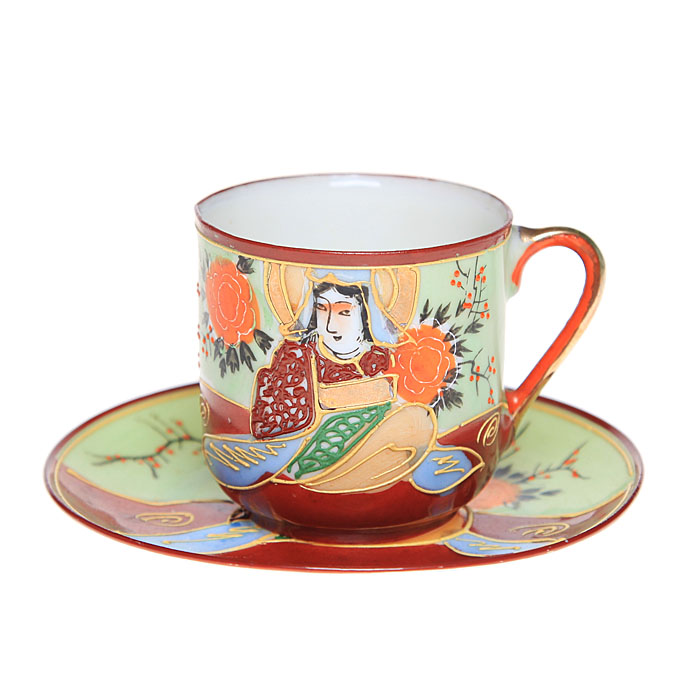 Кофейная пара "Подлинный самурай" в стиле мориаж, тонкий костяной фарфор, ручная роспись и золочение. Satsuma, Япония, первая половина ХХ века.