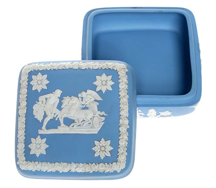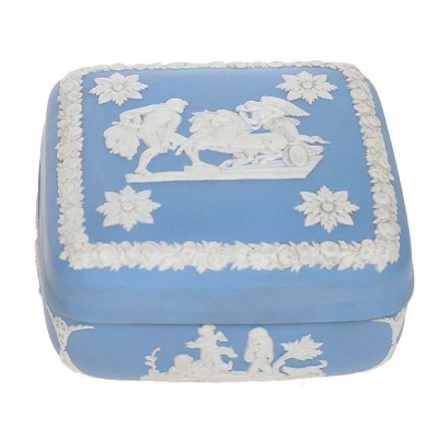 Шкатулка для мелочей, фарфор, винтаж, голубой бисквит, Wedgwood, Великобритания, вторая половина 20 века