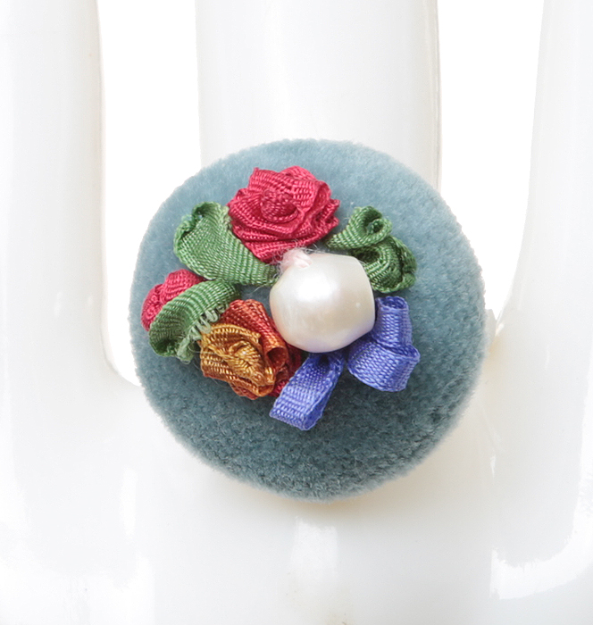 Кольцо коктейльное "Сонет" в стиле рококо. Натуральный шелк, бархат, французская вышивка, натуральная жемчужина, ювелирный сплав серебряного тона. Ручная авторская работа, Шайденко Дарина. Россия