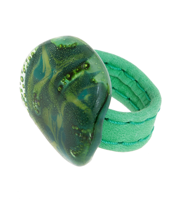 Кольцо коктейльное "Русалка". Стекло, натуральная кожа. Cristalida, Аргентина