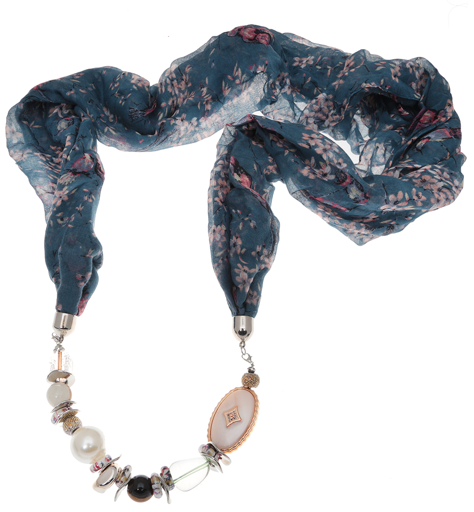 Шарф-колье, артикул SVB-017A-3. Трикотаж, металл, французский пластик, керамика, поделочные камни. Ручная работа. 70 х 150 см. Tantino, Россия