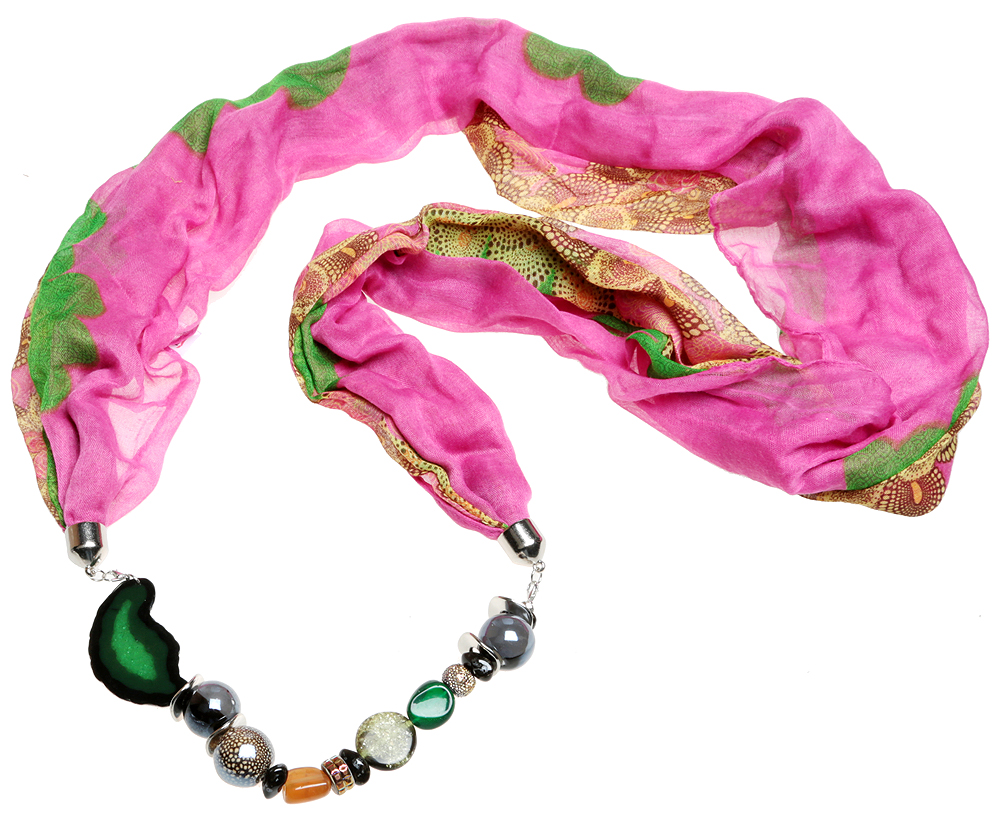 Шарф-колье, артикул SVB-017-2. Трикотаж, металл, французский пластик, керамика, поделочные камни. Ручная работа. 70 х 150 см. Tantino, Россия