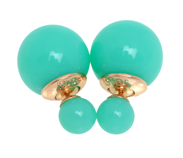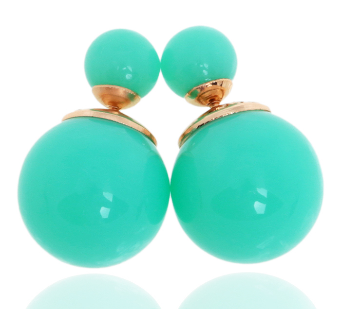 Серьги-шары "Королева моды". Бусины мятного цвета, бижутерный сплав золотого тона. Arrina, Гонконг