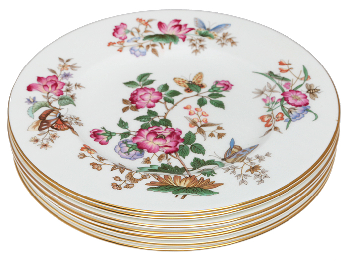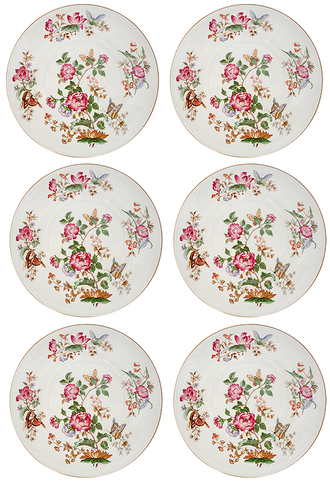 Набор столовых тарелок "Чарнвуд", 6 шт. Фафрор, деколь, золочение. Wedgwood, Великобритания, 1960-е гг.